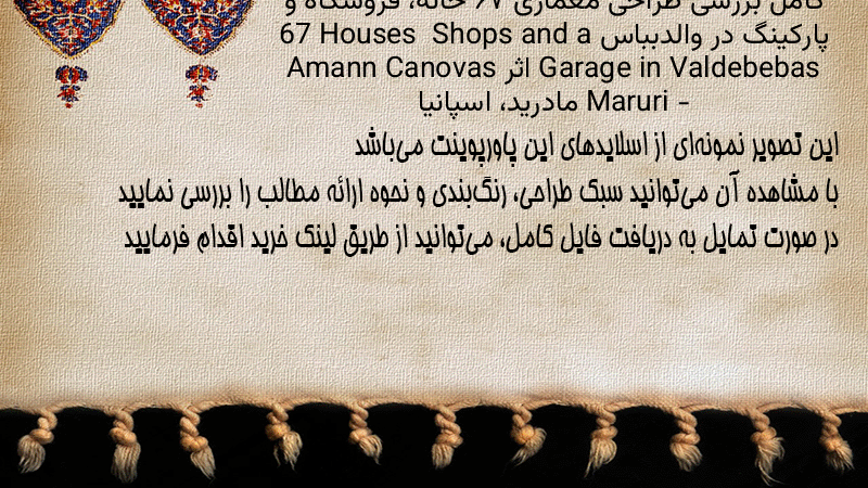 پاورپوینت کامل بررسی طراحی معماری ۶۷ خانه، فروشگاه و پارکینگ در والدبباس ۶۷ Houses Shops and a Garage in Valdebebas اثر Amann Canovas Maruri – مادرید، اسپانیا