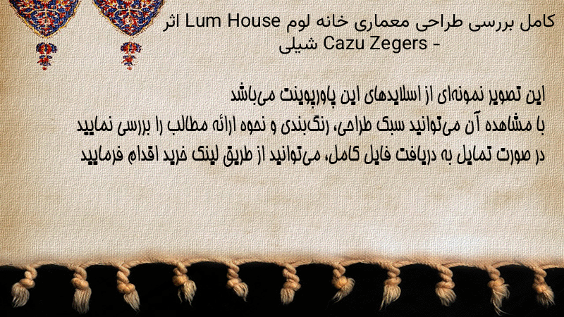 پاورپوینت کامل بررسی طراحی معماری خانه لوم Lum House اثر Cazu Zegers – شیلی