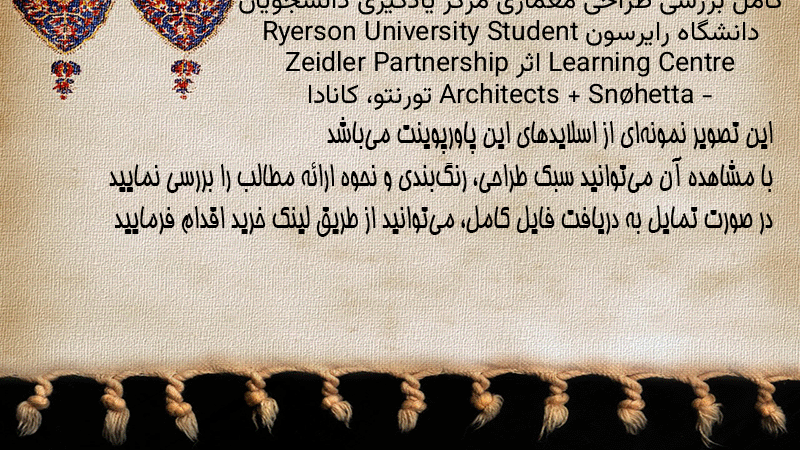 پاورپوینت کامل بررسی طراحی معماری مرکز یادگیری دانشجویان دانشگاه رایرسون Ryerson University Student Learning Centre اثر Zeidler Partnership Architects + Snøhetta – تورنتو، کانادا