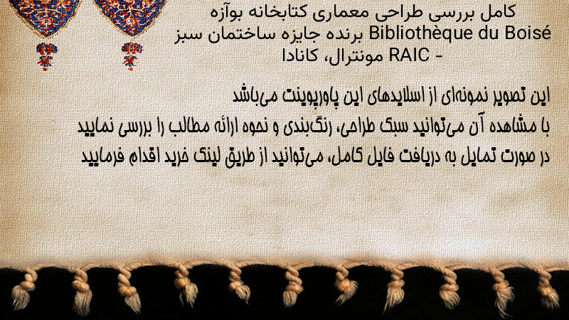 پاورپوینت کامل بررسی طراحی معماری کتابخانه بوآزه Bibliothèque du Boisé برنده جایزه ساختمان سبز RAIC – مونترال، کانادا