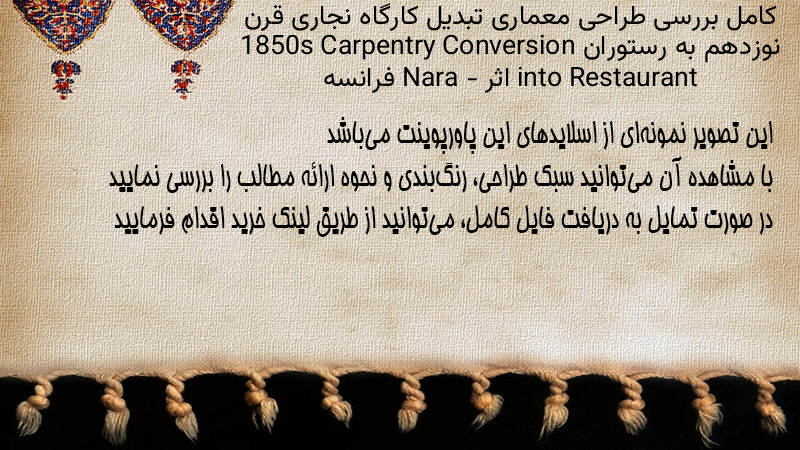 پاورپوینت کامل بررسی طراحی معماری تبدیل کارگاه نجاری قرن نوزدهم به رستوران ۱۸۵۰s Carpentry Conversion into Restaurant اثر Nara – فرانسه