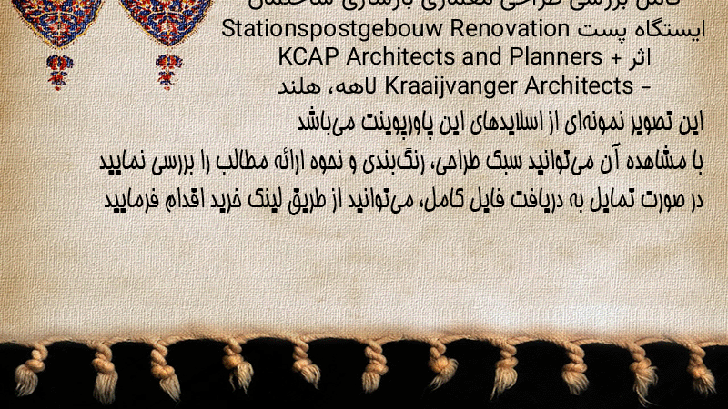 پاورپوینت کامل بررسی طراحی معماری بازسازی ساختمان ایستگاه پست Stationspostgebouw Renovation اثر KCAP Architects and Planners + Kraaijvanger Architects – لاهه، هلند