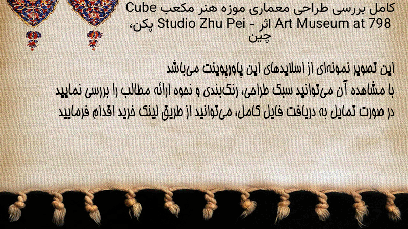 پاورپوینت کامل بررسی طراحی معماری موزه هنر مکعب Cube Art Museum at 798 اثر Studio Zhu Pei – پکن، چین
