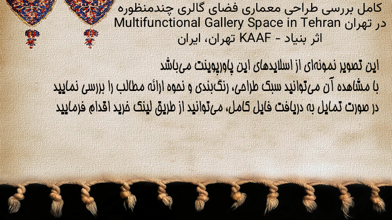 پاورپوینت کامل بررسی طراحی معماری فضای گالری چندمنظوره در تهران Multifunctional Gallery Space in Tehran اثر بنیاد KAAF – تهران، ایران