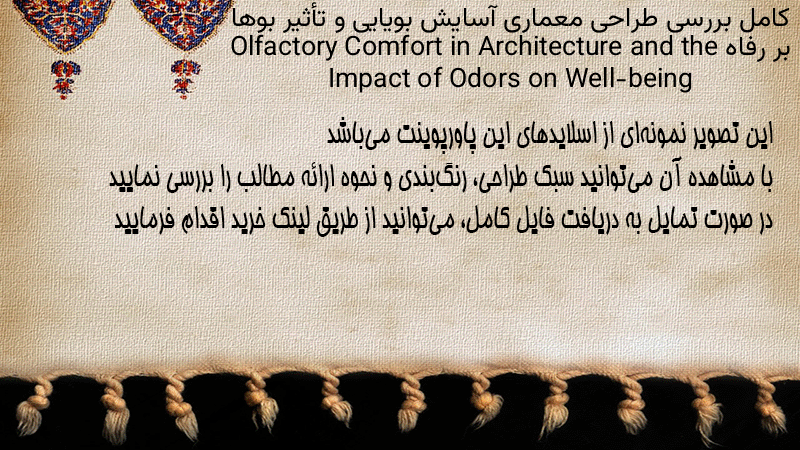 پاورپوینت کامل بررسی طراحی معماری آسایش بویایی و تأثیر بوها بر رفاه Olfactory Comfort in Architecture and the Impact of Odors on Well-being
