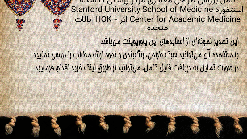 پاورپوینت کامل بررسی طراحی معماری مرکز پزشکی دانشگاه استنفورد Stanford University School of Medicine Center for Academic Medicine اثر HOK – ایالات متحده
