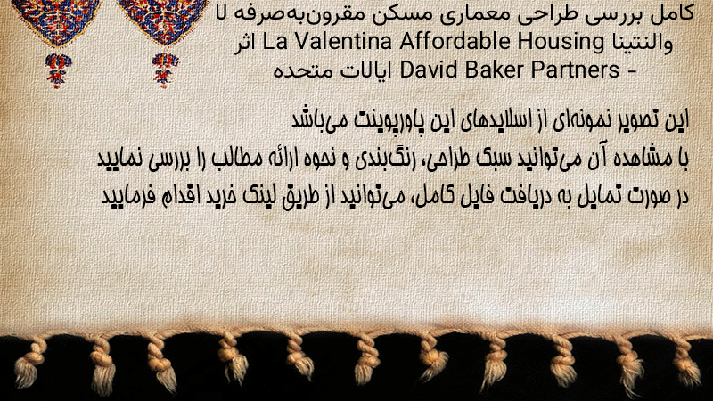 پاورپوینت کامل بررسی طراحی معماری مسکن مقرونبهصرفه لا والنتینا La Valentina Affordable Housing اثر David Baker Partners – ایالات متحده