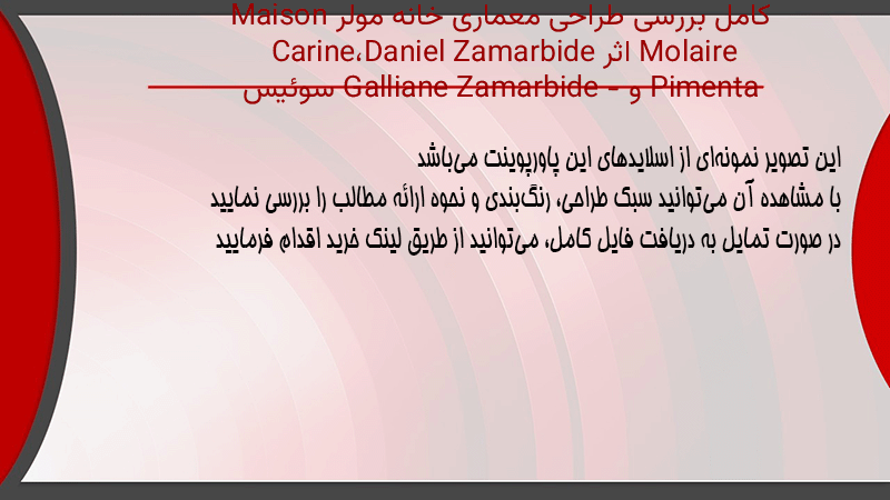 پاورپوینت کامل بررسی طراحی معماری خانه مولر Maison Molaire اثر Daniel Zamarbide، Carine Pimenta و Galliane Zamarbide – سوئیس