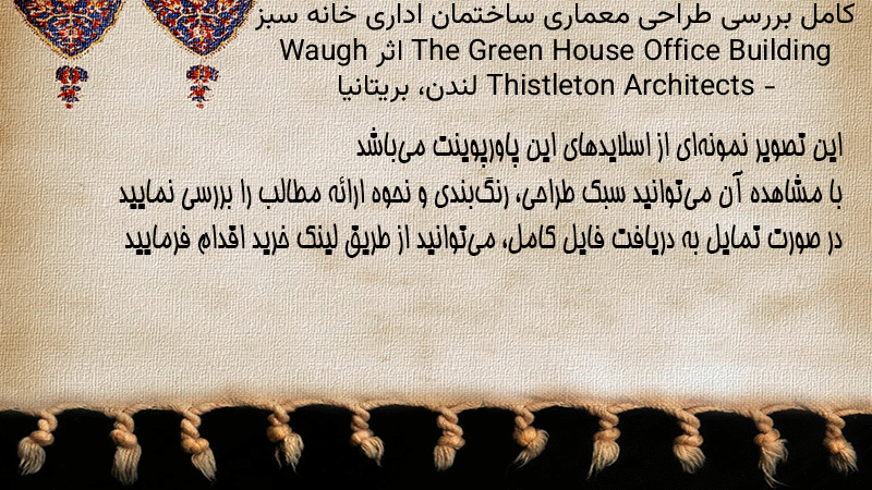 پاورپوینت کامل بررسی طراحی معماری ساختمان اداری خانه سبز The Green House Office Building اثر Waugh Thistleton Architects – لندن، بریتانیا