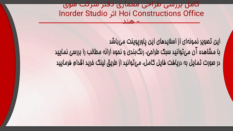پاورپوینت کامل بررسی طراحی معماری دفتر شرکت هوی Hoi Constructions Office اثر Inorder Studio – هند