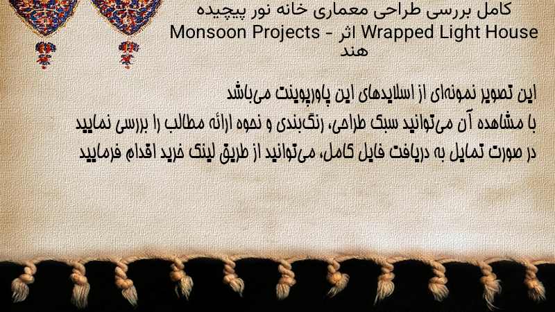 پاورپوینت کامل بررسی طراحی معماری خانه نور پیچیده Wrapped Light House اثر Monsoon Projects – هند