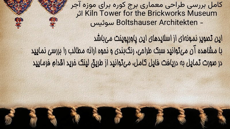 پاورپوینت کامل بررسی طراحی معماری برج کوره برای موزه آجر Kiln Tower for the Brickworks Museum اثر Boltshauser Architekten – سوئیس