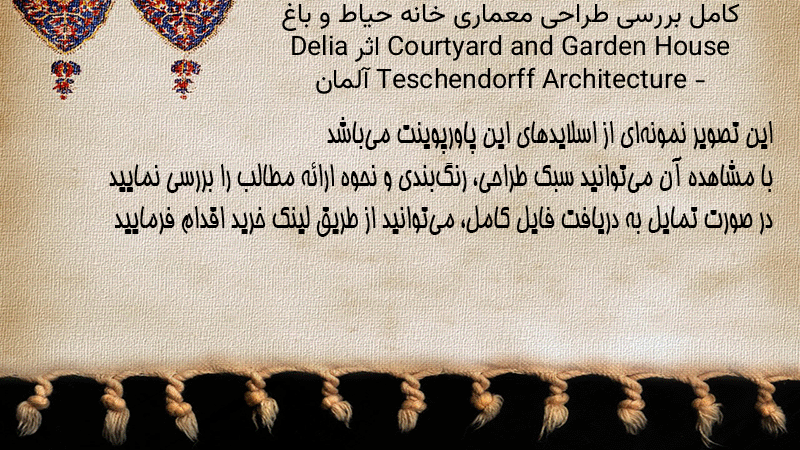 پاورپوینت کامل بررسی طراحی معماری خانه حیاط و باغ Courtyard and Garden House اثر Delia Teschendorff Architecture – آلمان
