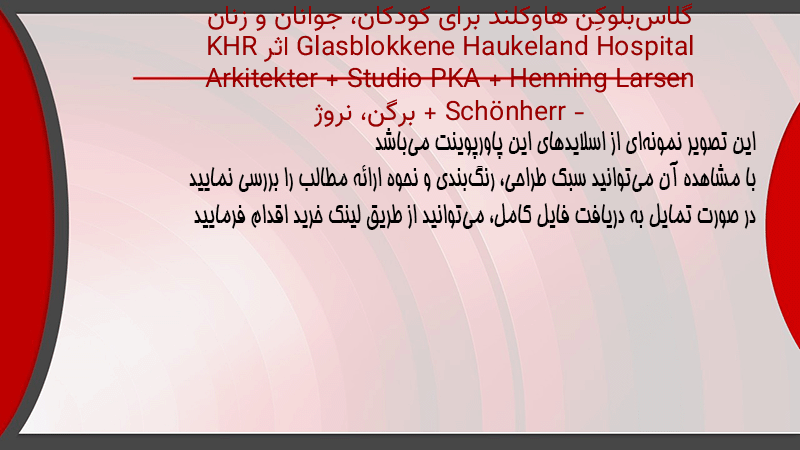 پاورپوینت کامل بررسی طراحی معماری بیمارستان گلاسبلوکِن هاوکلند برای کودکان، جوانان و زنان Glasblokkene Haukeland Hospital اثر KHR Arkitekter + Studio PKA + Henning Larsen + Schönherr – برگن، نروژ
