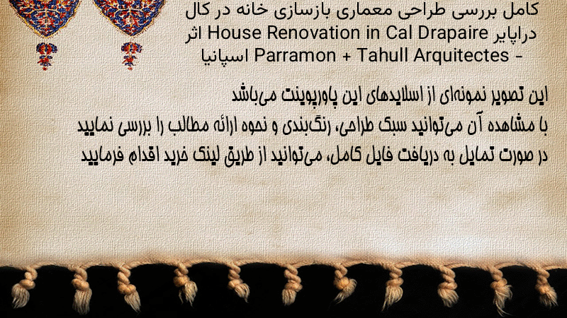 پاورپوینت کامل بررسی طراحی معماری بازسازی خانه در کال دراپایر House Renovation in Cal Drapaire اثر Parramon + Tahull Arquitectes – اسپانیا