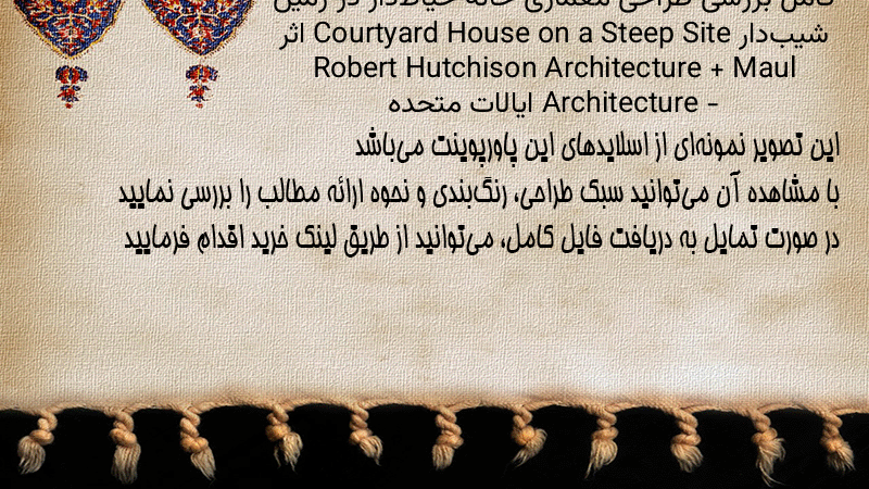 پاورپوینت کامل بررسی طراحی معماری خانه حیاطدار در زمین شیبدار Courtyard House on a Steep Site اثر Robert Hutchison Architecture + Maul Architecture – ایالات متحده