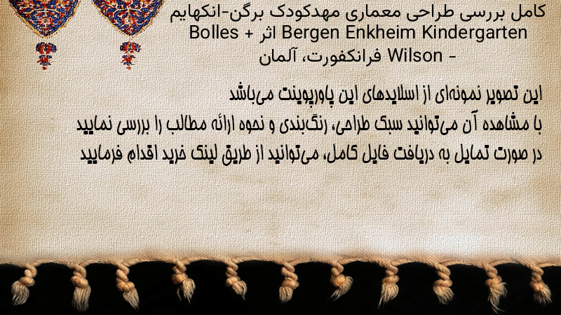 پاورپوینت کامل بررسی طراحی معماری مهدکودک برگن-انکهایم Bergen Enkheim Kindergarten اثر Bolles + Wilson – فرانکفورت، آلمان
