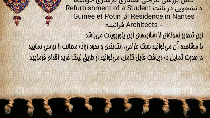 پاورپوینت کامل بررسی طراحی معماری بازسازی خوابگاه دانشجویی در نانت Refurbishment of a Student Residence in Nantes اثر Guinee et Potin Architects – فرانسه