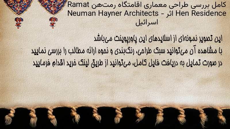 پاورپوینت کامل بررسی طراحی معماری اقامتگاه رمتهن Ramat Hen Residence اثر Neuman Hayner Architects – اسرائیل