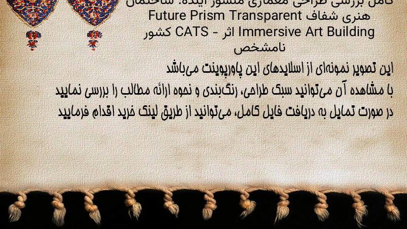 پاورپوینت کامل بررسی طراحی معماری منشور آینده: ساختمان هنری شفاف Future Prism Transparent Immersive Art Building اثر CATS – کشور نامشخص