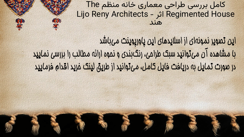 پاورپوینت کامل بررسی طراحی معماری خانه منظم The Regimented House اثر Lijo Reny Architects – هند
