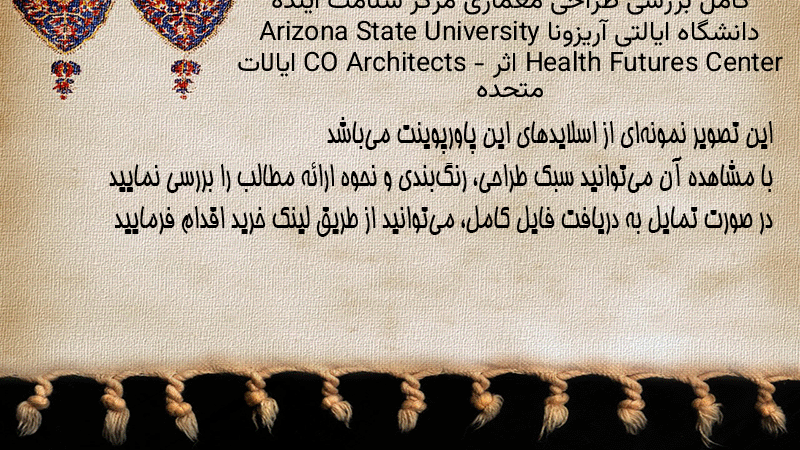پاورپوینت کامل بررسی طراحی معماری مرکز سلامت آینده دانشگاه ایالتی آریزونا Arizona State University Health Futures Center اثر CO Architects – ایالات متحده