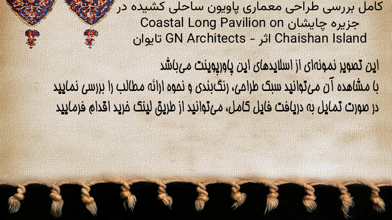 پاورپوینت کامل بررسی طراحی معماری پاویون ساحلی کشیده در جزیره چایشان Coastal Long Pavilion on Chaishan Island اثر GN Architects – تایوان