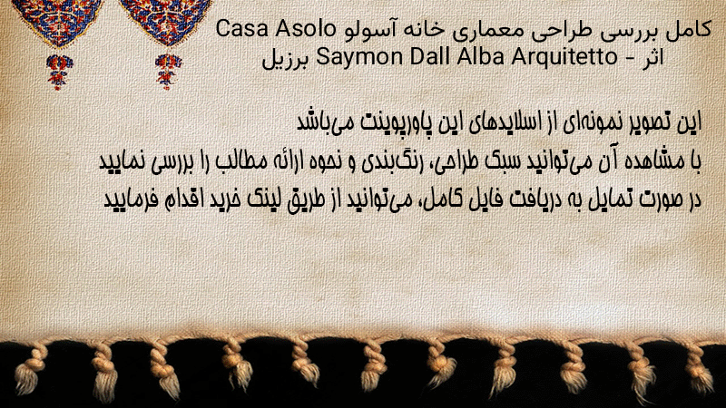 پاورپوینت کامل بررسی طراحی معماری خانه آسولو Casa Asolo اثر Saymon Dall Alba Arquitetto – برزیل