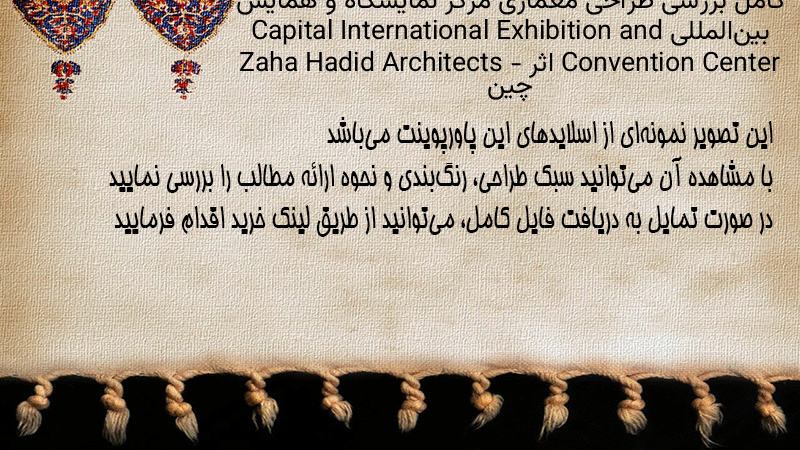 پاورپوینت کامل بررسی طراحی معماری مرکز نمایشگاه و همایش بینالمللی Capital International Exhibition and Convention Center اثر Zaha Hadid Architects – چین