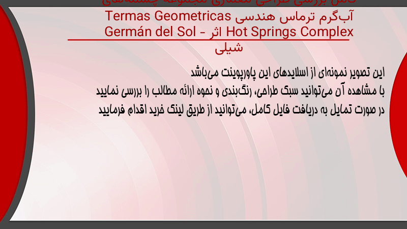 پاورپوینت کامل بررسی طراحی معماری مجموعه چشمههای آبگرم ترماس هندسی Termas Geometricas Hot Springs Complex اثر Germán del Sol – شیلی