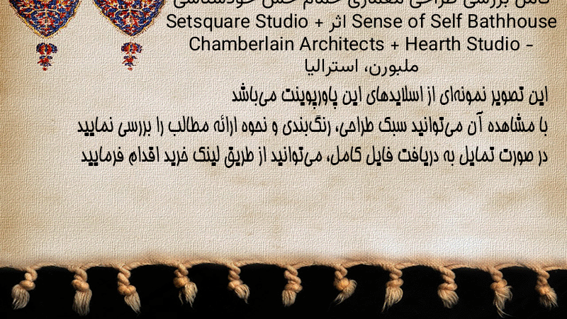 پاورپوینت کامل بررسی طراحی معماری حمام حس خودشناسی Sense of Self Bathhouse اثر Setsquare Studio + Chamberlain Architects + Hearth Studio – ملبورن، استرالیا
