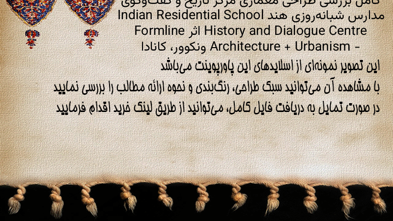 پاورپوینت کامل بررسی طراحی معماری مرکز تاریخ و گفتوگوی مدارس شبانهروزی هند Indian Residential School History and Dialogue Centre اثر Formline Architecture + Urbanism – ونکوور، کانادا