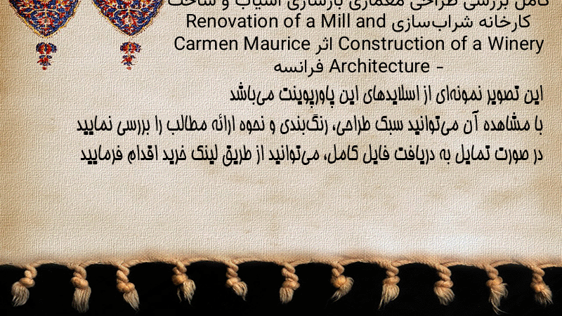 پاورپوینت کامل بررسی طراحی معماری بازسازی آسیاب و ساخت کارخانه شرابسازی Renovation of a Mill and Construction of a Winery اثر Carmen Maurice Architecture – فرانسه
