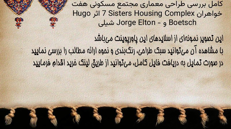 پاورپوینت کامل بررسی طراحی معماری مجتمع مسکونی هفت خواهران ۷ Sisters Housing Complex اثر Hugo Boetsch و Jorge Elton – شیلی