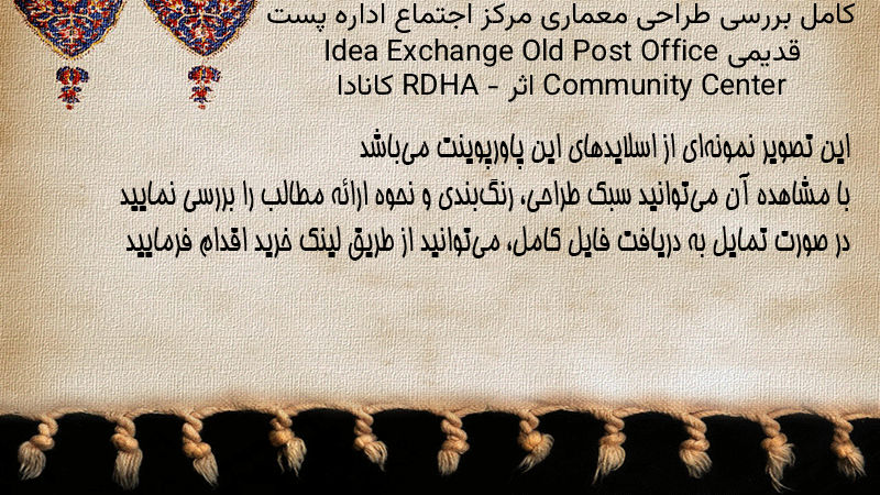 پاورپوینت کامل بررسی طراحی معماری مرکز اجتماع اداره پست قدیمی Idea Exchange Old Post Office Community Center اثر RDHA – کانادا
