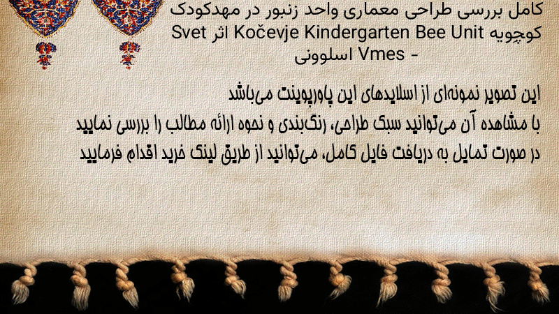 پاورپوینت کامل بررسی طراحی معماری واحد زنبور در مهدکودک کوچِویه Kočevje Kindergarten Bee Unit اثر Svet Vmes – اسلوونی