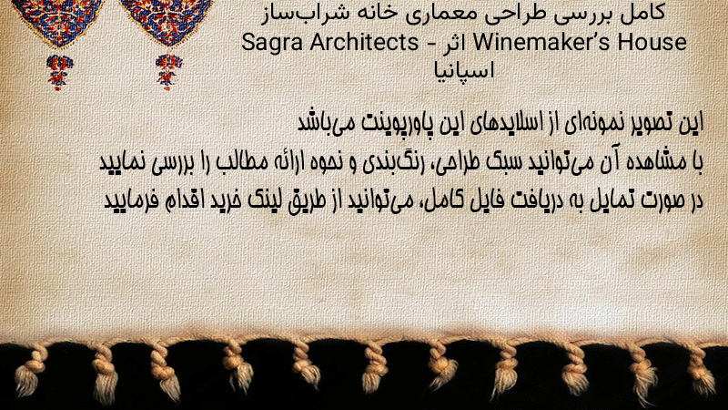 پاورپوینت کامل بررسی طراحی معماری خانه شرابساز Winemaker’s House اثر Sagra Architects – اسپانیا