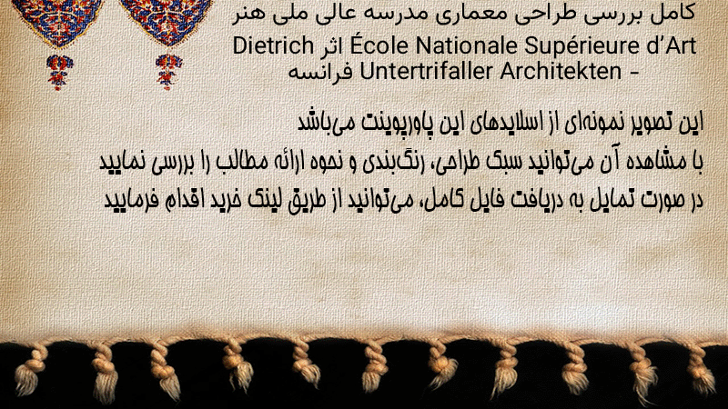 پاورپوینت کامل بررسی طراحی معماری مدرسه عالی ملی هنر École Nationale Supérieure d’Art اثر Dietrich Untertrifaller Architekten – فرانسه