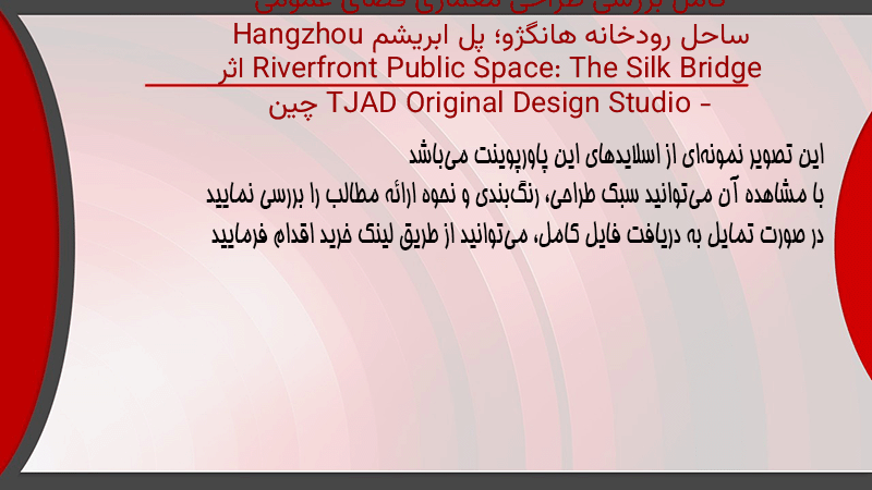پاورپوینت کامل بررسی طراحی معماری فضای عمومی ساحل رودخانه هانگژو؛ پل ابریشم Hangzhou Riverfront Public Space: The Silk Bridge اثر TJAD Original Design Studio – چین