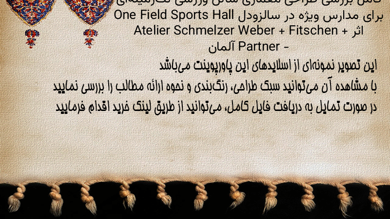 پاورپوینت کامل بررسی طراحی معماری سالن ورزشی تکزمینهای برای مدارس ویژه در سالزودل One Field Sports Hall اثر Atelier Schmelzer Weber + Fitschen + Partner – آلمان