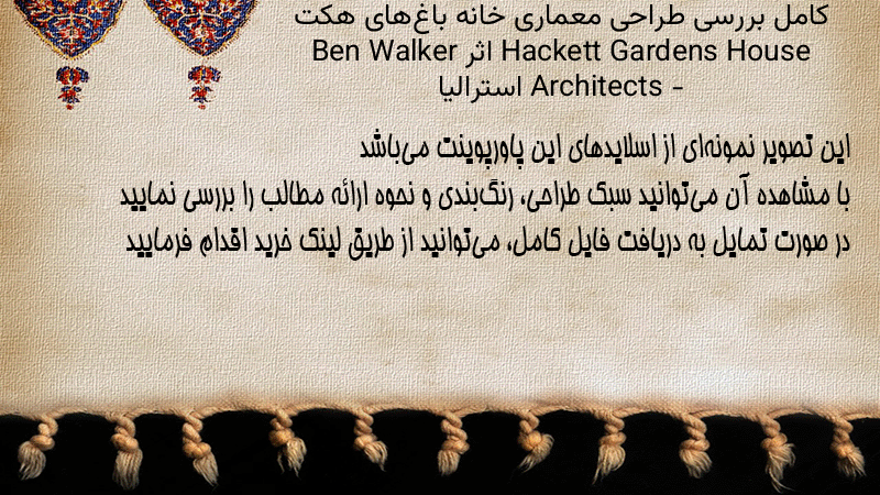 پاورپوینت کامل بررسی طراحی معماری خانه باغهای هکت Hackett Gardens House اثر Ben Walker Architects – استرالیا