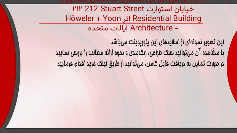 پاورپوینت کامل بررسی طراحی معماری ساختمان مسکونی خیابان استوارت ۲۱۲ ۲۱۲ Stuart Street Residential Building اثر Höweler + Yoon Architecture – ایالات متحده