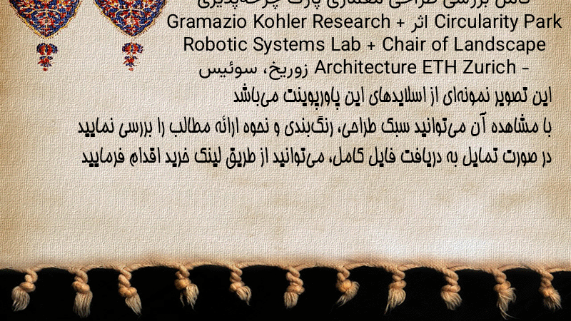پاورپوینت کامل بررسی طراحی معماری پارک چرخهپذیری Circularity Park اثر Gramazio Kohler Research + Robotic Systems Lab + Chair of Landscape Architecture ETH Zurich – زوریخ، سوئیس