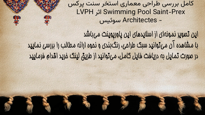 پاورپوینت کامل بررسی طراحی معماری استخر سنت پرکس Swimming Pool Saint-Prex اثر LVPH Architectes – سوئیس