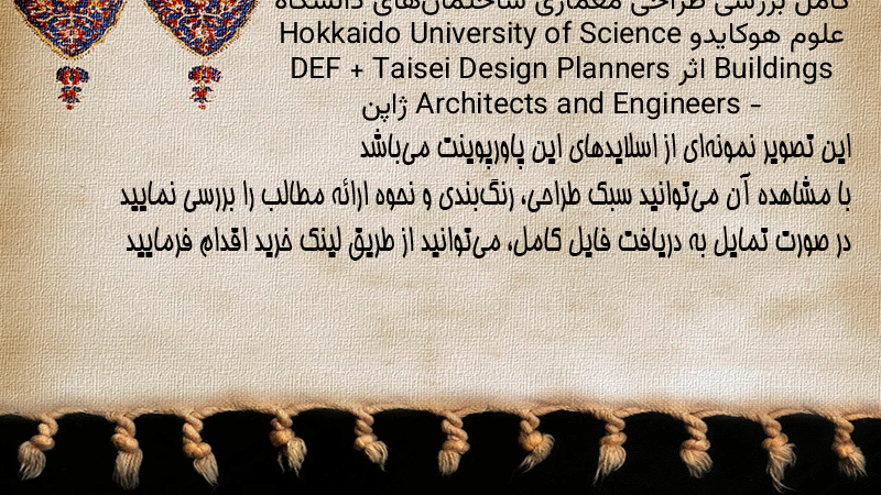 پاورپوینت کامل بررسی طراحی معماری ساختمانهای دانشگاه علوم هوکایدو Hokkaido University of Science Buildings اثر DEF + Taisei Design Planners Architects and Engineers – ژاپن