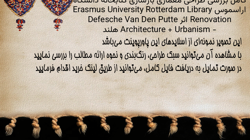 پاورپوینت کامل بررسی طراحی معماری بازسازی کتابخانه دانشگاه اراسموس Erasmus University Rotterdam Library Renovation اثر Defesche Van Den Putte Architecture + Urbanism – هلند