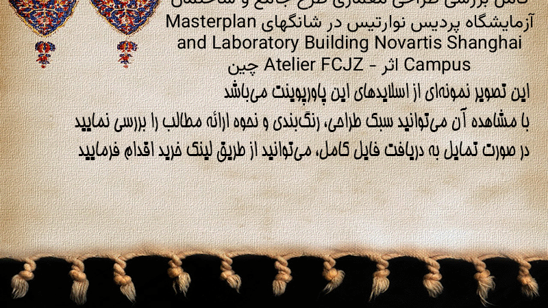 پاورپوینت کامل بررسی طراحی معماری طرح جامع و ساختمان آزمایشگاه پردیس نوارتیس در شانگهای Masterplan and Laboratory Building Novartis Shanghai Campus اثر Atelier FCJZ – چین