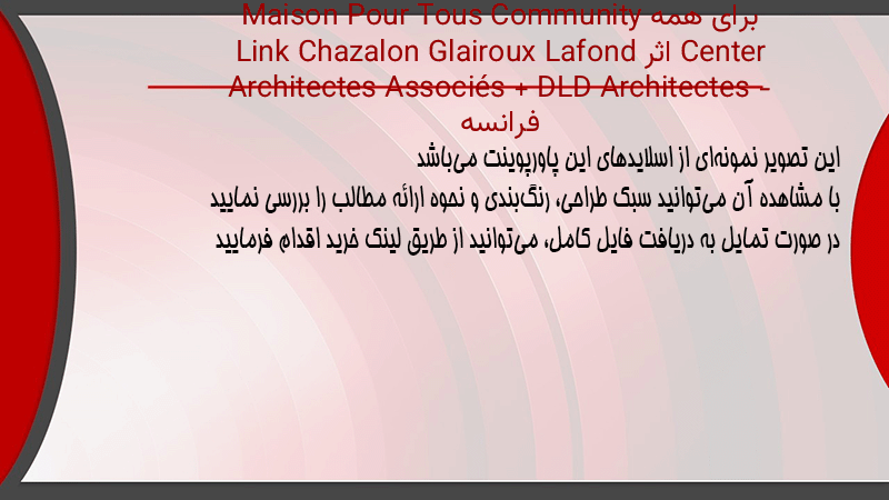 پاورپوینت کامل بررسی طراحی معماری مرکز اجتماعی خانه برای همه Maison Pour Tous Community Center اثر Link Chazalon Glairoux Lafond Architectes Associés + DLD Architectes – فرانسه