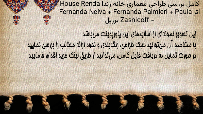 پاورپوینت کامل بررسی طراحی معماری خانه رندا House Renda اثر Fernanda Neiva + Fernanda Palmieri + Paula Zasnicoff – برزیل