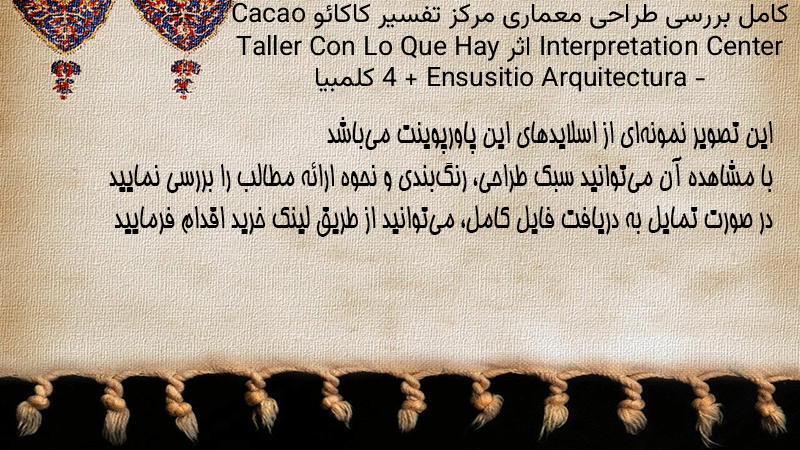 پاورپوینت کامل بررسی طراحی معماری مرکز تفسیر کاکائو Cacao Interpretation Center اثر Taller Con Lo Que Hay 4 + Ensusitio Arquitectura – کلمبیا